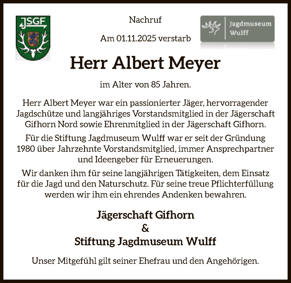 Hier finden Sie alle Traueranzeigen aus der Zeitung, die bisher für Albert Meyer erschienen sind. Weitere Traueranzeigen, die in der Zeitung erscheinen, werden hier ebenfalls aufgelistet