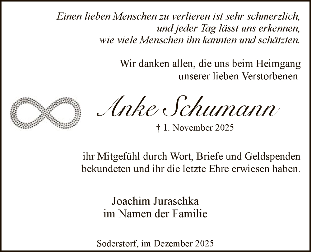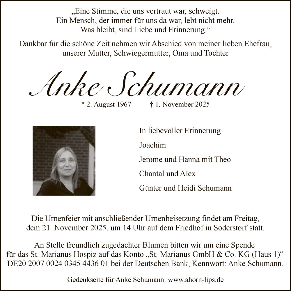 Hier finden Sie alle Traueranzeigen aus der Zeitung, die bisher für Anke Schumann erschienen sind. Weitere Traueranzeigen, die in der Zeitung erscheinen, werden hier ebenfalls aufgelistet