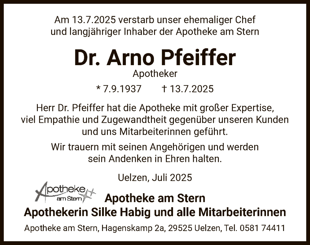 Hier finden Sie alle Traueranzeigen aus der Zeitung, die bisher für Arno Pfeiffer erschienen sind. Weitere Traueranzeigen, die in der Zeitung erscheinen, werden hier ebenfalls aufgelistet