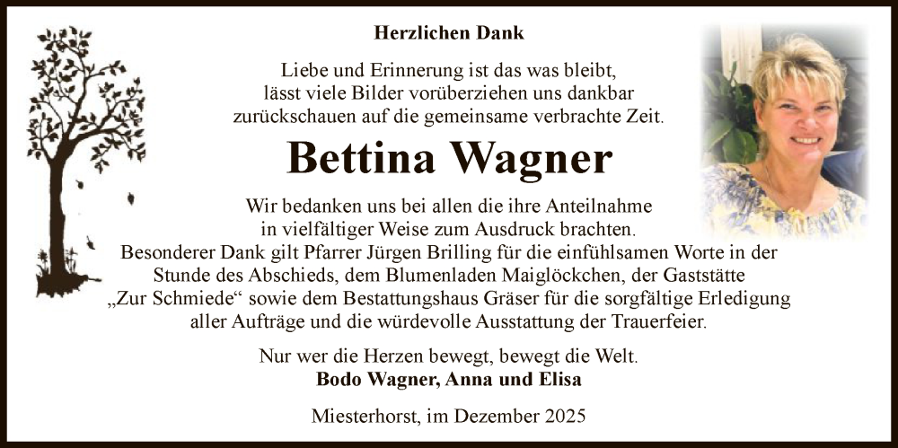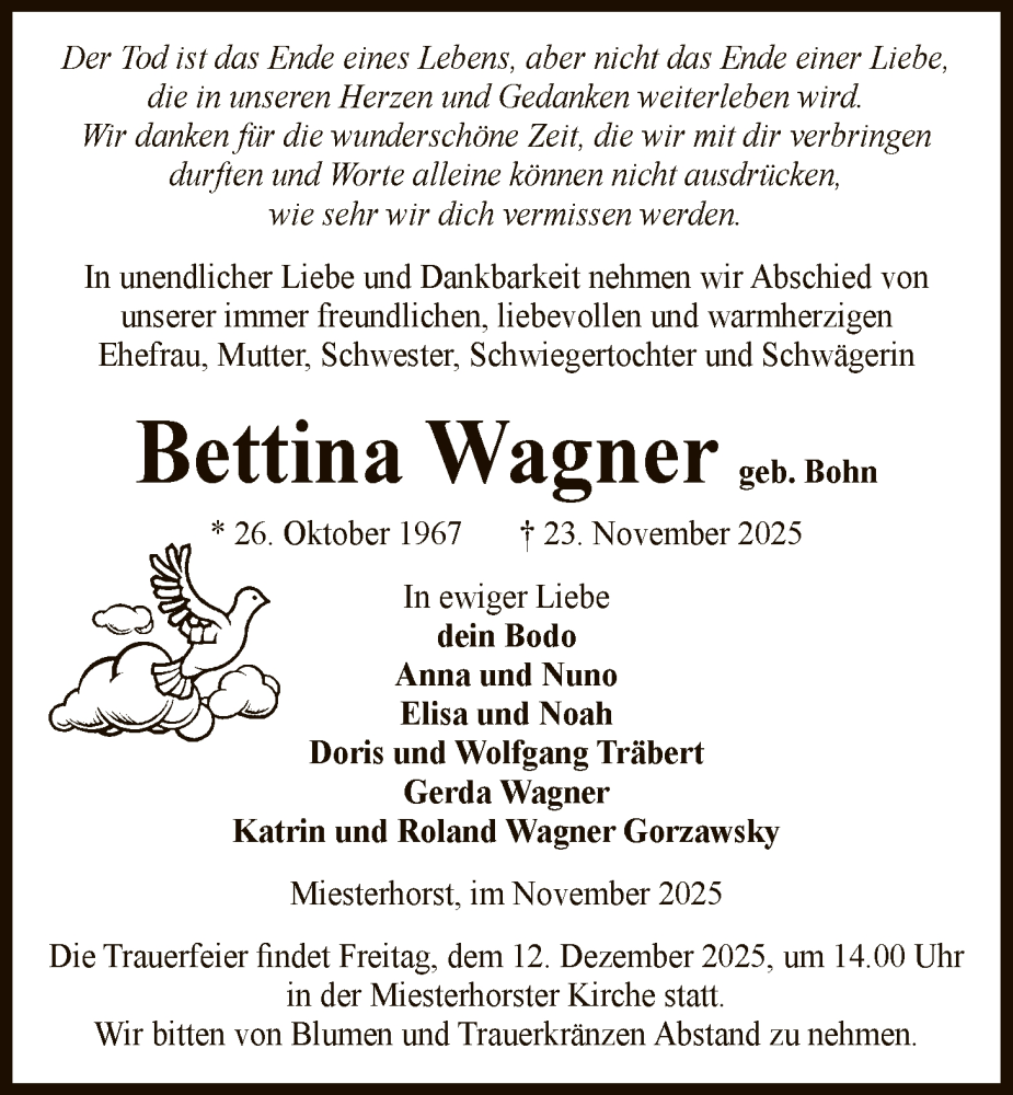 Hier finden Sie alle Traueranzeigen aus der Zeitung, die bisher für Bettina Wagner erschienen sind. Weitere Traueranzeigen, die in der Zeitung erscheinen, werden hier ebenfalls aufgelistet