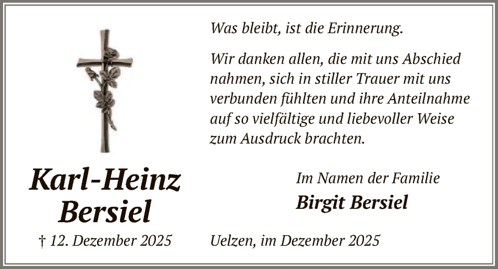 Hier finden Sie alle Traueranzeigen aus der Zeitung, die bisher für Birgit Bersiel erschienen sind. Weitere Traueranzeigen, die in der Zeitung erscheinen, werden hier ebenfalls aufgelistet