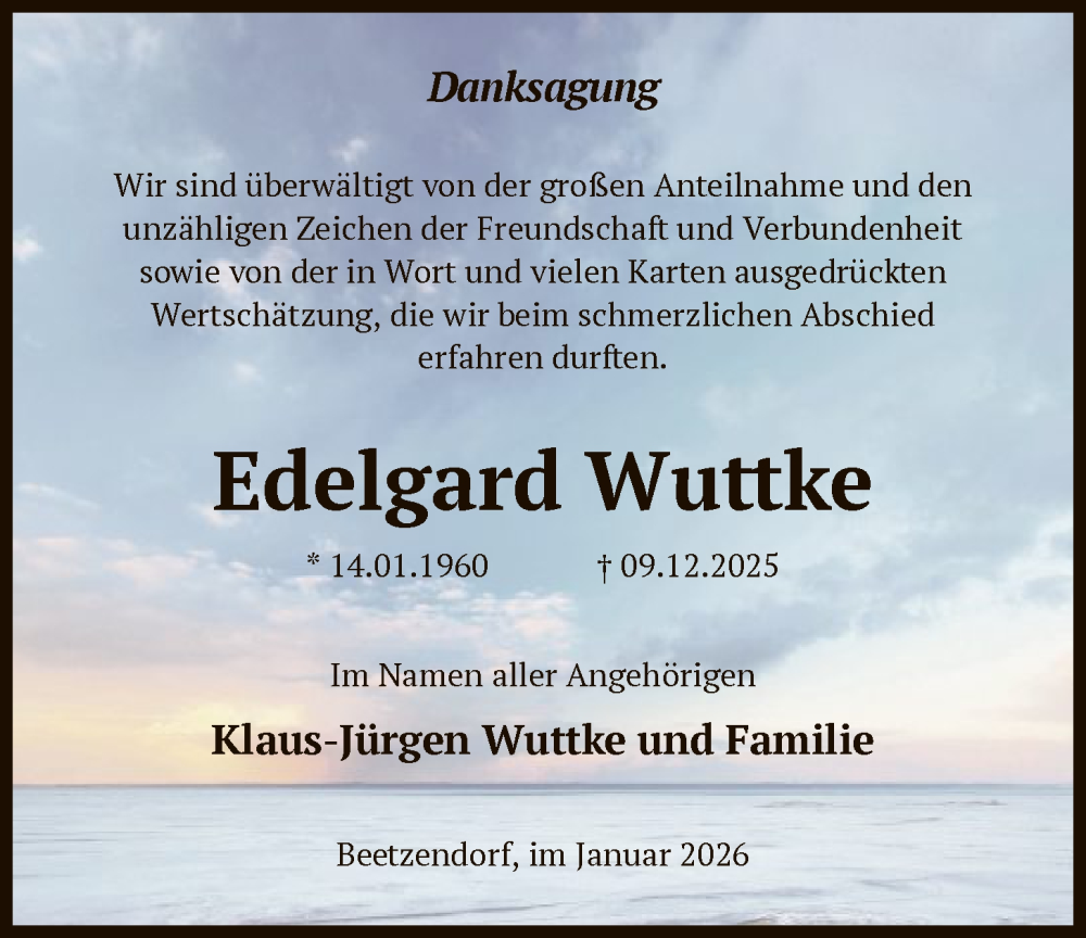 Hier finden Sie alle Traueranzeigen aus der Zeitung, die bisher für Edelgard Wuttke erschienen sind. Weitere Traueranzeigen, die in der Zeitung erscheinen, werden hier ebenfalls aufgelistet