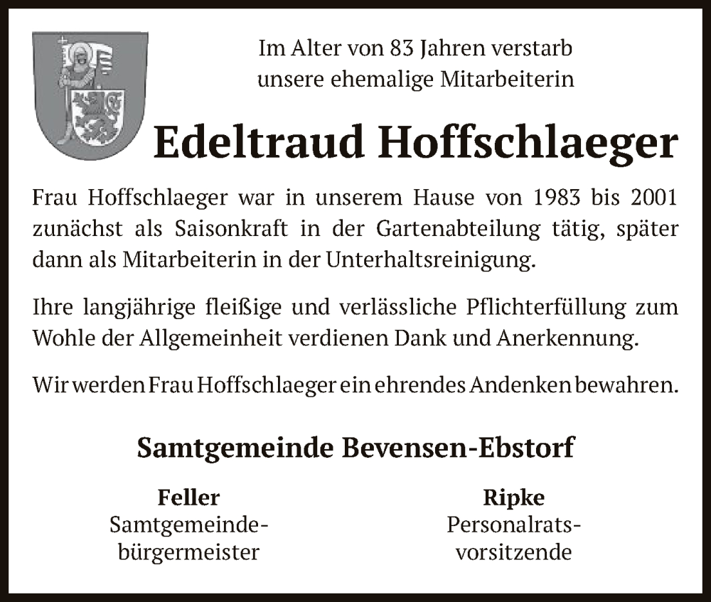 Hier finden Sie alle Traueranzeigen aus der Zeitung, die bisher für Edeltraud Hoffschlaeger erschienen sind. Weitere Traueranzeigen, die in der Zeitung erscheinen, werden hier ebenfalls aufgelistet