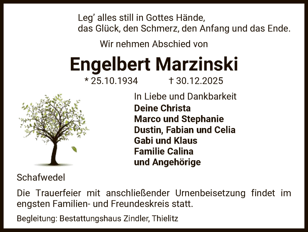 Hier finden Sie alle Traueranzeigen aus der Zeitung, die bisher für Engelbert Marzinski erschienen sind. Weitere Traueranzeigen, die in der Zeitung erscheinen, werden hier ebenfalls aufgelistet