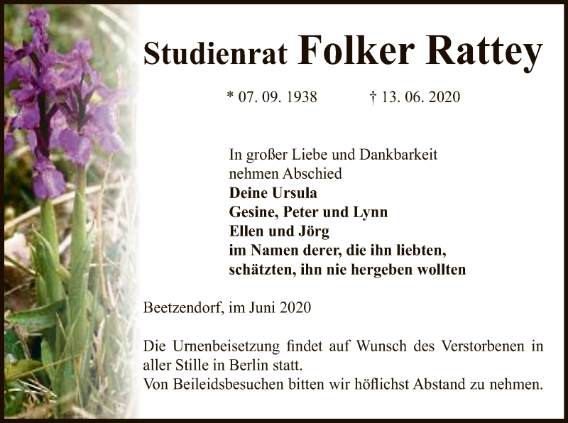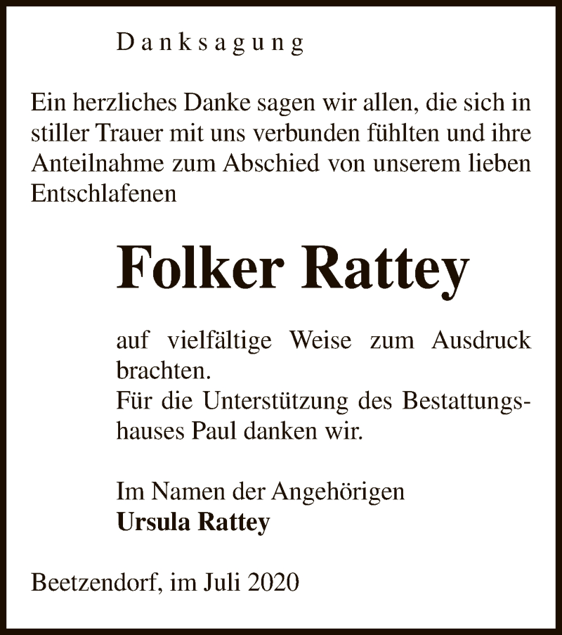 Hier finden Sie alle Traueranzeigen aus der Zeitung, die bisher für Folker Rattey erschienen sind. Weitere Traueranzeigen, die in der Zeitung erscheinen, werden hier ebenfalls aufgelistet
