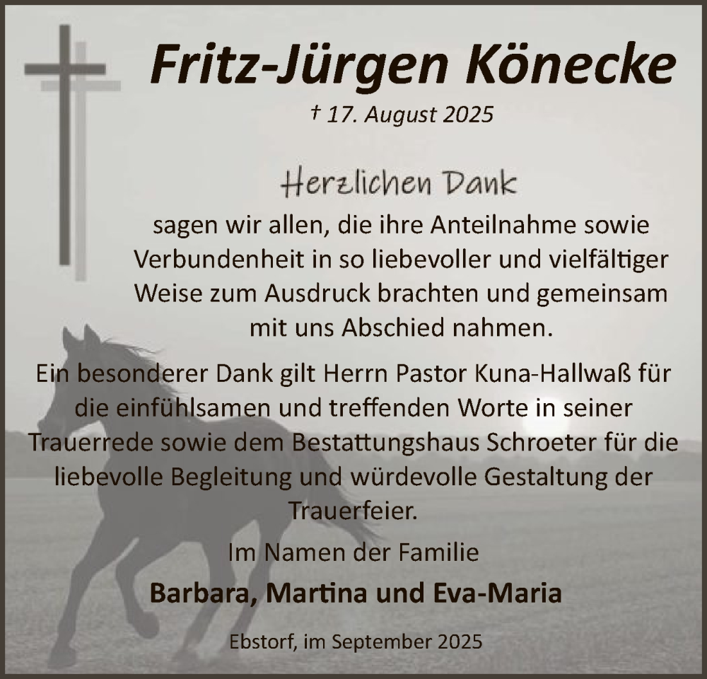 Hier finden Sie alle Traueranzeigen aus der Zeitung, die bisher für Fritz-Jürgen Könecke erschienen sind. Weitere Traueranzeigen, die in der Zeitung erscheinen, werden hier ebenfalls aufgelistet