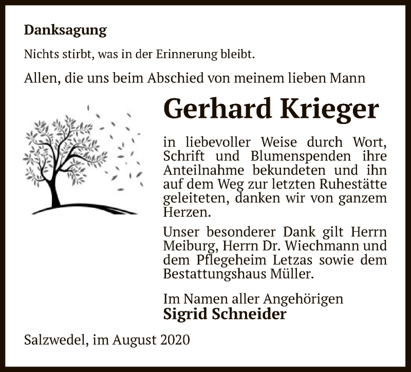 Hier finden Sie alle Traueranzeigen aus der Zeitung, die bisher für Gerhard Krieger erschienen sind. Weitere Traueranzeigen, die in der Zeitung erscheinen, werden hier ebenfalls aufgelistet