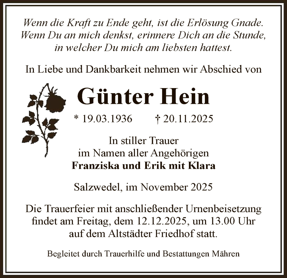 Hier finden Sie alle Traueranzeigen aus der Zeitung, die bisher für Günter Hein erschienen sind. Weitere Traueranzeigen, die in der Zeitung erscheinen, werden hier ebenfalls aufgelistet