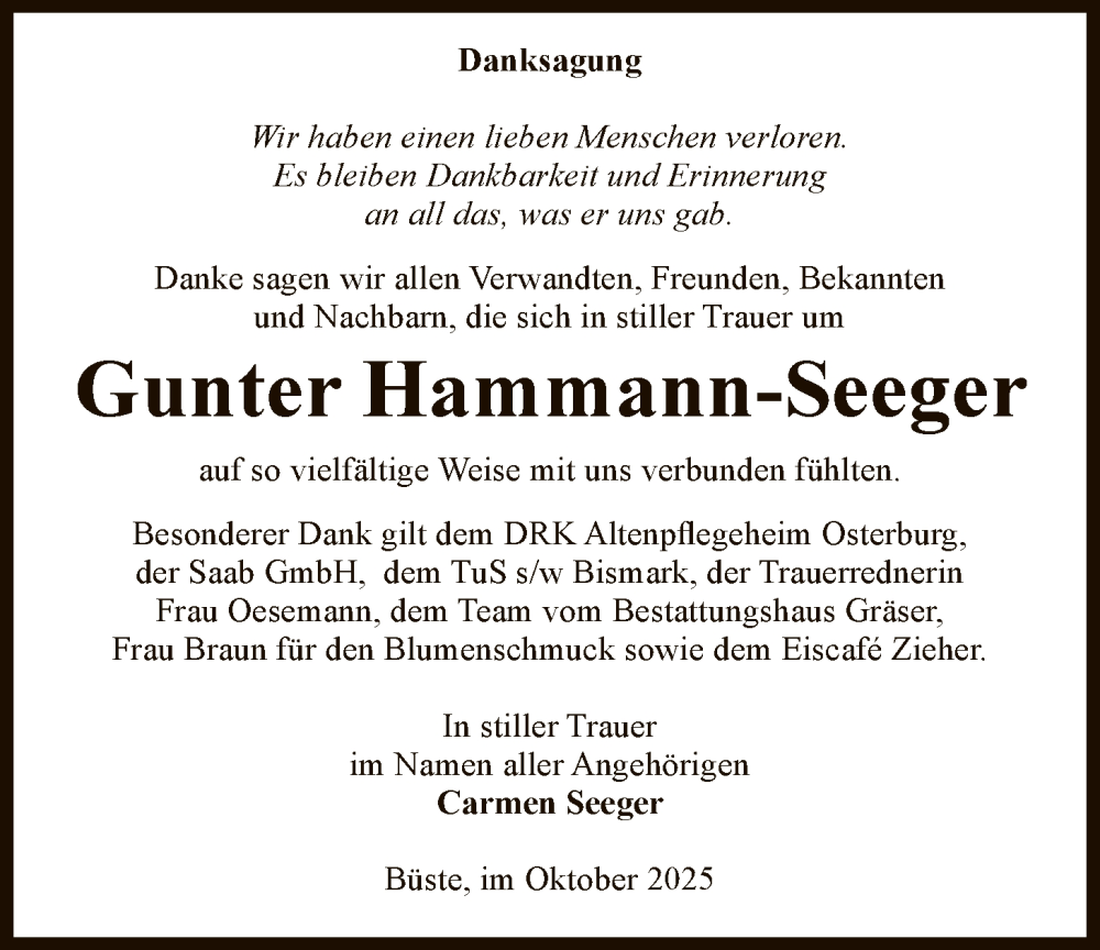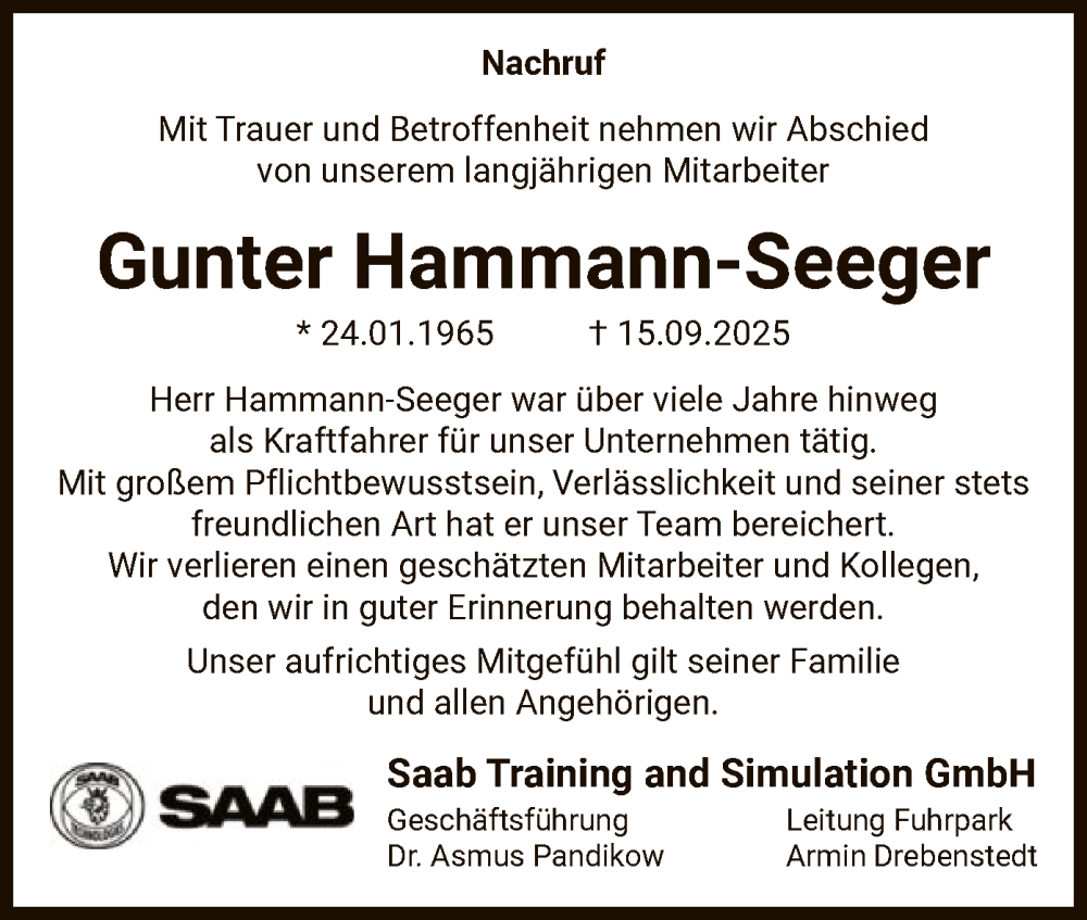 Hier finden Sie alle Traueranzeigen aus der Zeitung, die bisher für Gunter Hammann-Seeger erschienen sind. Weitere Traueranzeigen, die in der Zeitung erscheinen, werden hier ebenfalls aufgelistet