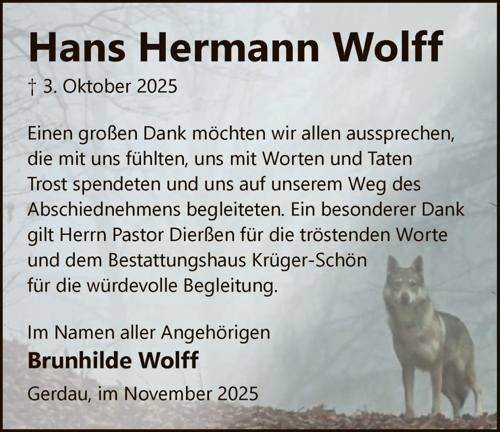 Hier finden Sie alle Traueranzeigen aus der Zeitung, die bisher für Hans Hermann Wolff erschienen sind. Weitere Traueranzeigen, die in der Zeitung erscheinen, werden hier ebenfalls aufgelistet