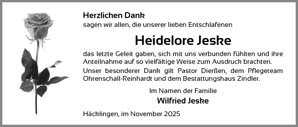 Hier finden Sie alle Traueranzeigen aus der Zeitung, die bisher für Heidelore Jeske erschienen sind. Weitere Traueranzeigen, die in der Zeitung erscheinen, werden hier ebenfalls aufgelistet