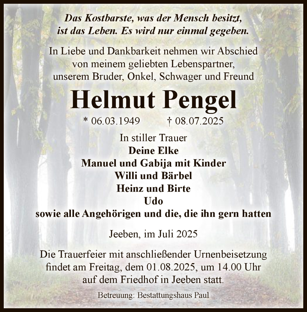 Hier finden Sie alle Traueranzeigen aus der Zeitung, die bisher für Helmut Pengel erschienen sind. Weitere Traueranzeigen, die in der Zeitung erscheinen, werden hier ebenfalls aufgelistet
