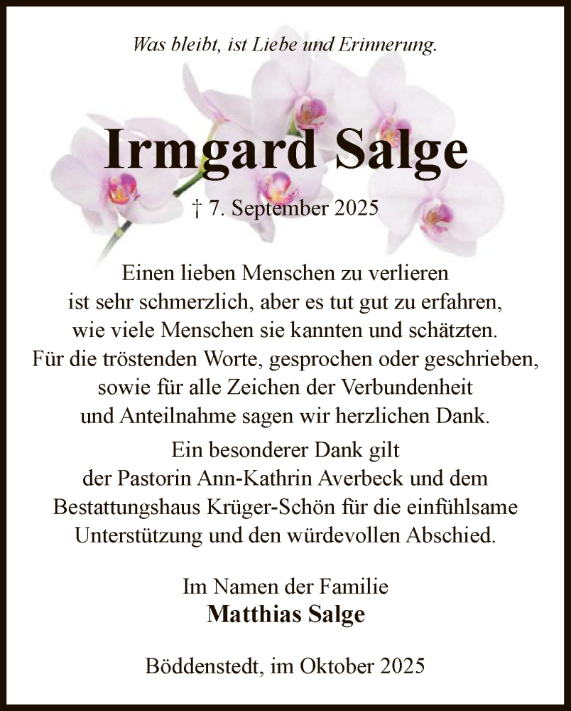 Hier finden Sie alle Traueranzeigen aus der Zeitung, die bisher für Irmgard Salge erschienen sind. Weitere Traueranzeigen, die in der Zeitung erscheinen, werden hier ebenfalls aufgelistet