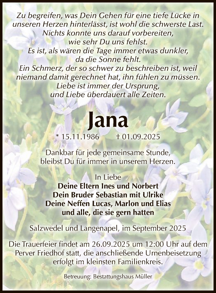 Hier finden Sie alle Traueranzeigen aus der Zeitung, die bisher für Jana Muchow erschienen sind. Weitere Traueranzeigen, die in der Zeitung erscheinen, werden hier ebenfalls aufgelistet