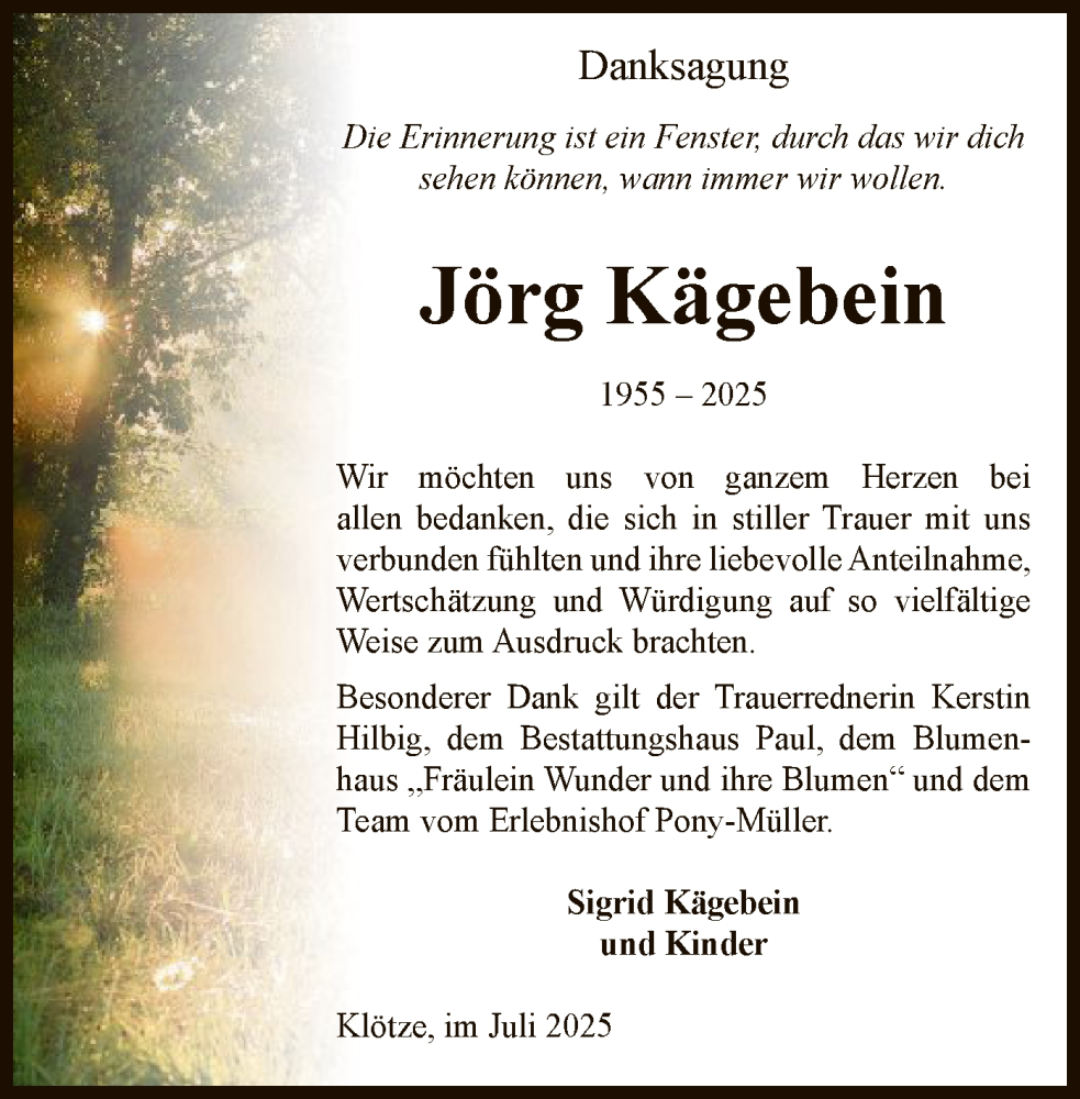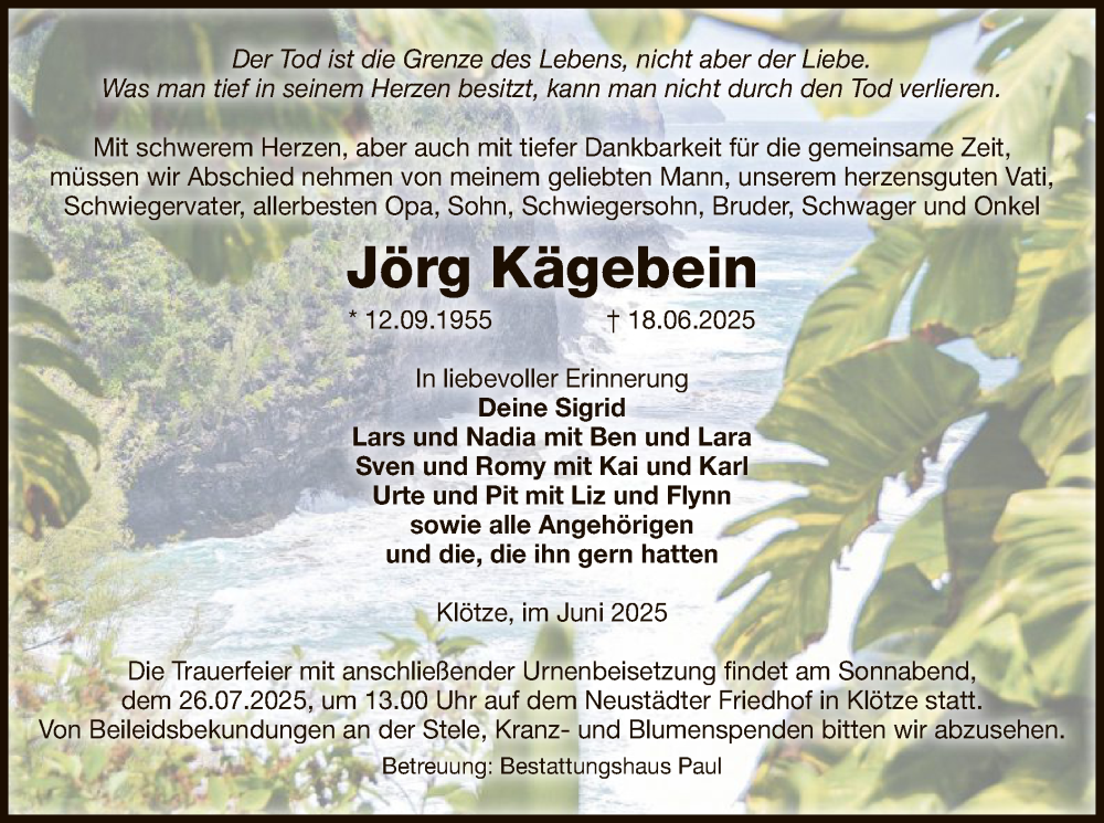 Hier finden Sie alle Traueranzeigen aus der Zeitung, die bisher für Jörg Kägebein erschienen sind. Weitere Traueranzeigen, die in der Zeitung erscheinen, werden hier ebenfalls aufgelistet