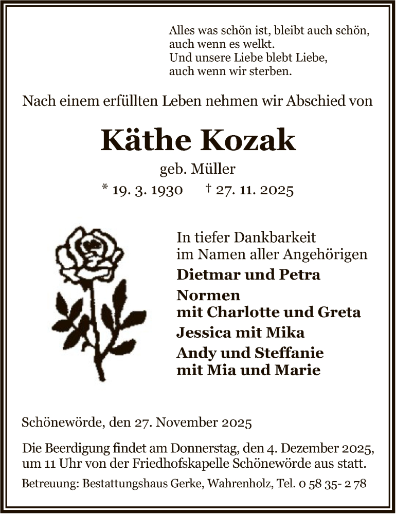 Hier finden Sie alle Traueranzeigen aus der Zeitung, die bisher für Käthe Kozak erschienen sind. Weitere Traueranzeigen, die in der Zeitung erscheinen, werden hier ebenfalls aufgelistet