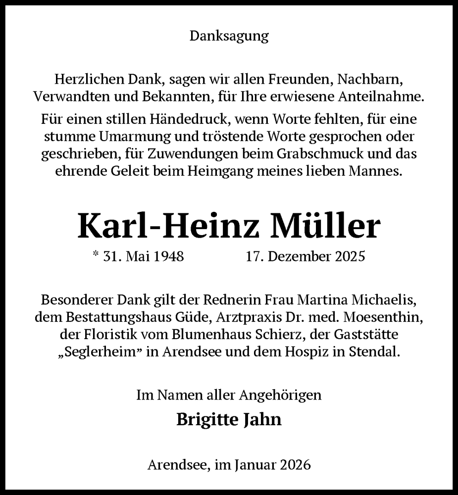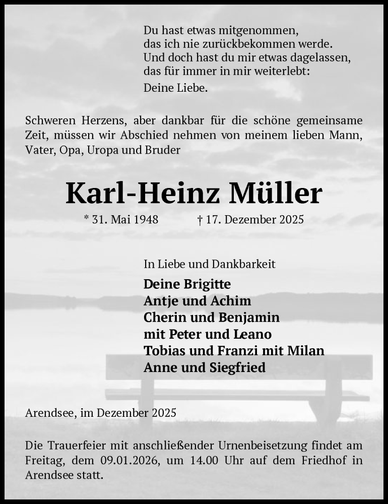 Hier finden Sie alle Traueranzeigen aus der Zeitung, die bisher für Karl-Heinz Müller erschienen sind. Weitere Traueranzeigen, die in der Zeitung erscheinen, werden hier ebenfalls aufgelistet