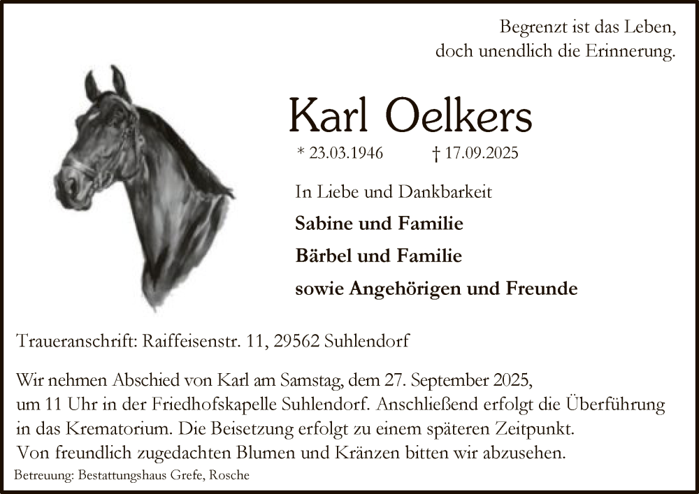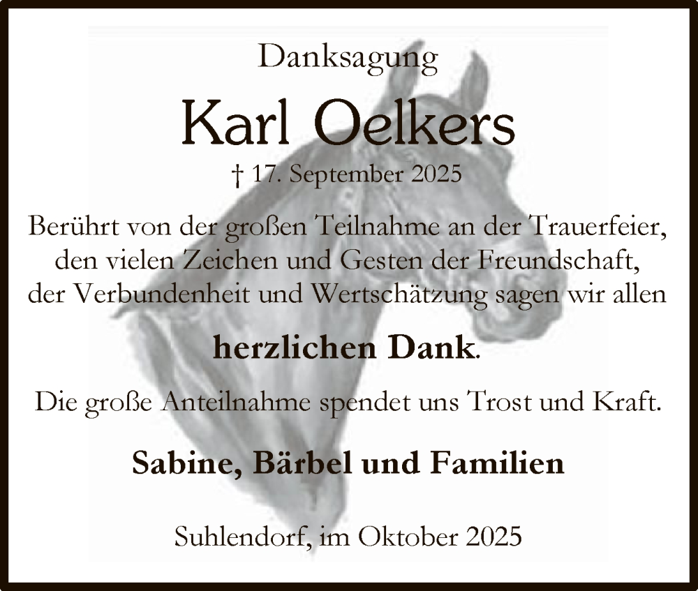 Hier finden Sie alle Traueranzeigen aus der Zeitung, die bisher für Karl Oelkers erschienen sind. Weitere Traueranzeigen, die in der Zeitung erscheinen, werden hier ebenfalls aufgelistet