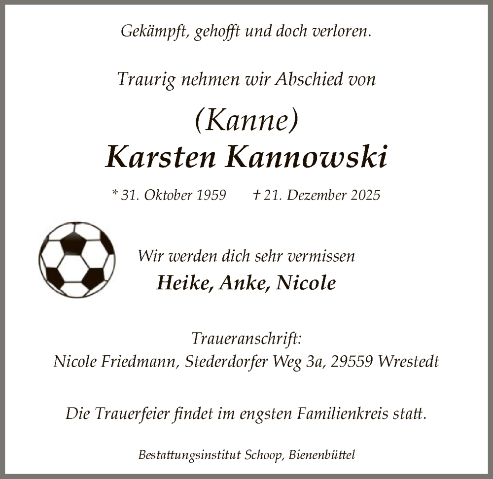 Hier finden Sie alle Traueranzeigen aus der Zeitung, die bisher für Karsten Kannowski erschienen sind. Weitere Traueranzeigen, die in der Zeitung erscheinen, werden hier ebenfalls aufgelistet