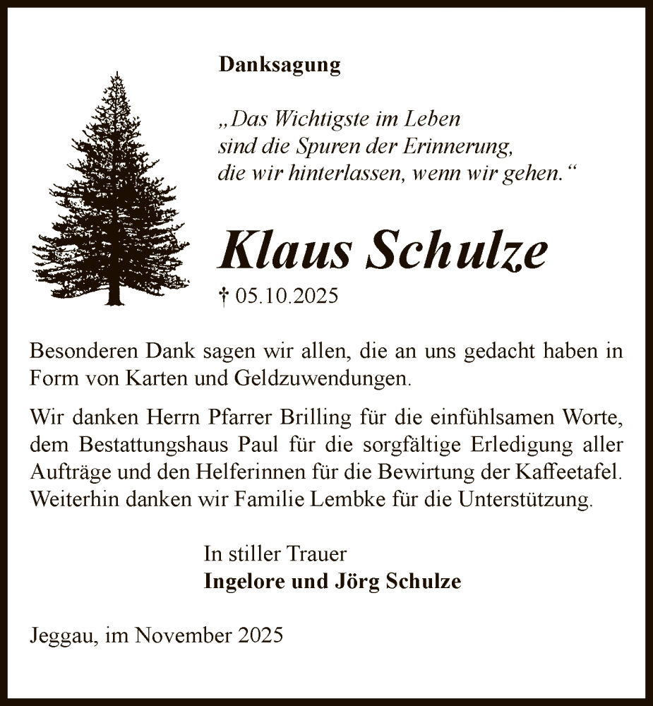 Hier finden Sie alle Traueranzeigen aus der Zeitung, die bisher für Klaus Schulze erschienen sind. Weitere Traueranzeigen, die in der Zeitung erscheinen, werden hier ebenfalls aufgelistet