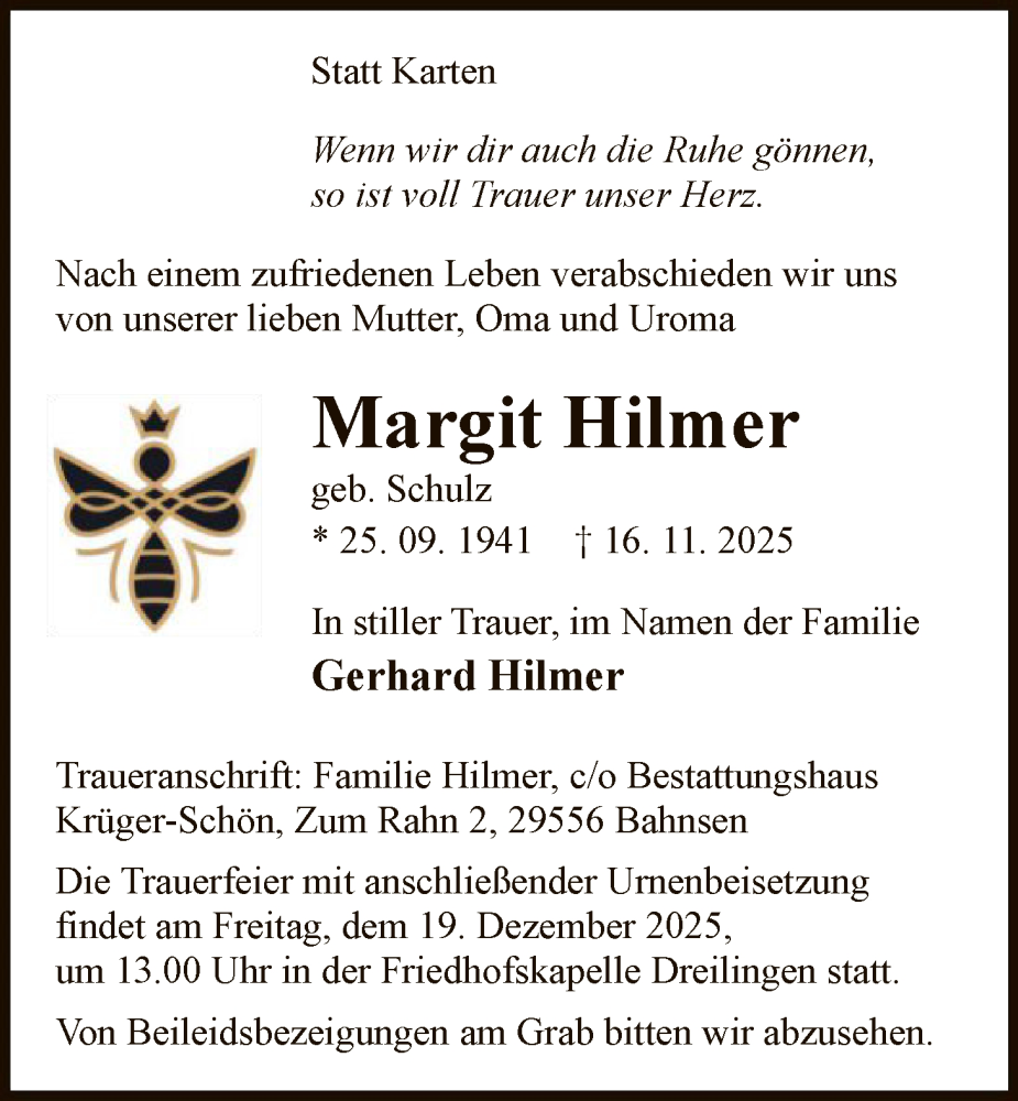 Hier finden Sie alle Traueranzeigen aus der Zeitung, die bisher für Margit Hilmer erschienen sind. Weitere Traueranzeigen, die in der Zeitung erscheinen, werden hier ebenfalls aufgelistet
