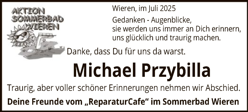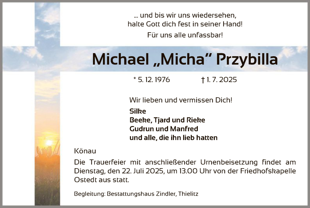Hier finden Sie alle Traueranzeigen aus der Zeitung, die bisher für Michael Przybilla erschienen sind. Weitere Traueranzeigen, die in der Zeitung erscheinen, werden hier ebenfalls aufgelistet