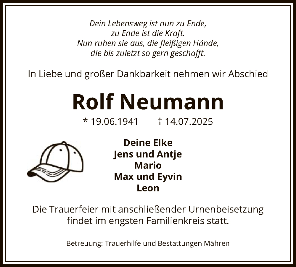Hier finden Sie alle Traueranzeigen aus der Zeitung, die bisher für Rolf Neumann erschienen sind. Weitere Traueranzeigen, die in der Zeitung erscheinen, werden hier ebenfalls aufgelistet