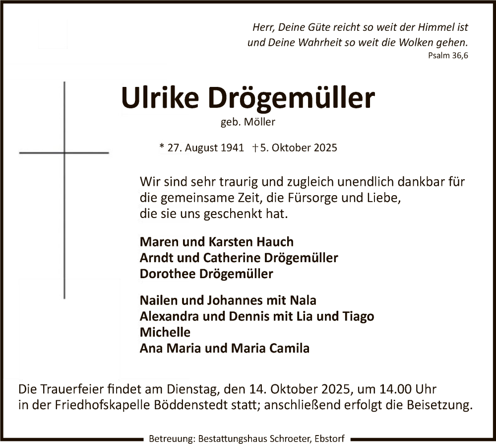 Hier finden Sie alle Traueranzeigen aus der Zeitung, die bisher für Ulrike Drögemüller erschienen sind. Weitere Traueranzeigen, die in der Zeitung erscheinen, werden hier ebenfalls aufgelistet