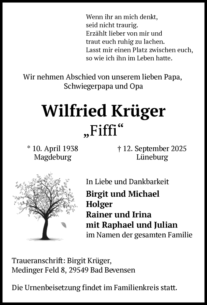 Hier finden Sie alle Traueranzeigen aus der Zeitung, die bisher für Wilfried Krüger erschienen sind. Weitere Traueranzeigen, die in der Zeitung erscheinen, werden hier ebenfalls aufgelistet