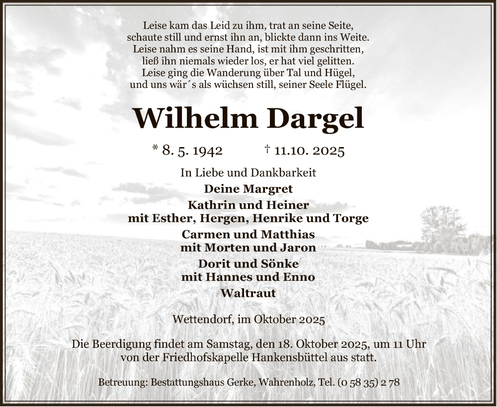 Hier finden Sie alle Traueranzeigen aus der Zeitung, die bisher für Wilhelm Dargel erschienen sind. Weitere Traueranzeigen, die in der Zeitung erscheinen, werden hier ebenfalls aufgelistet